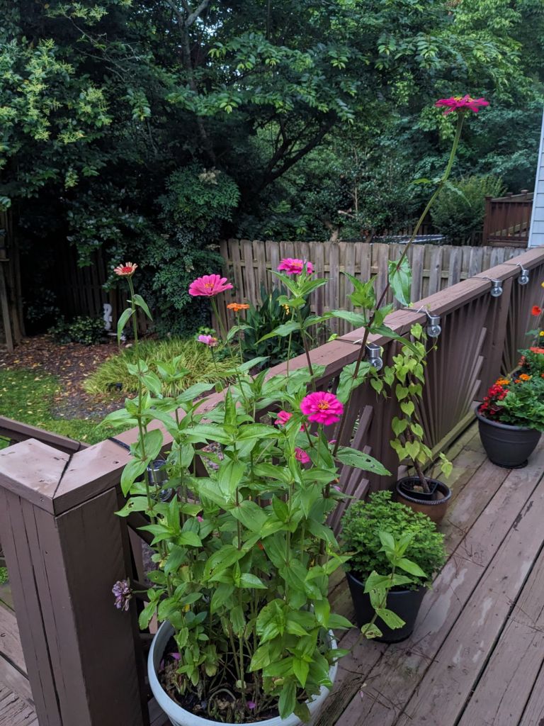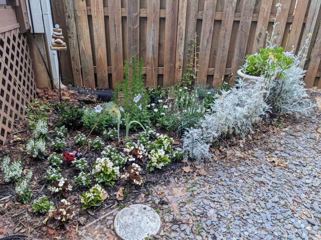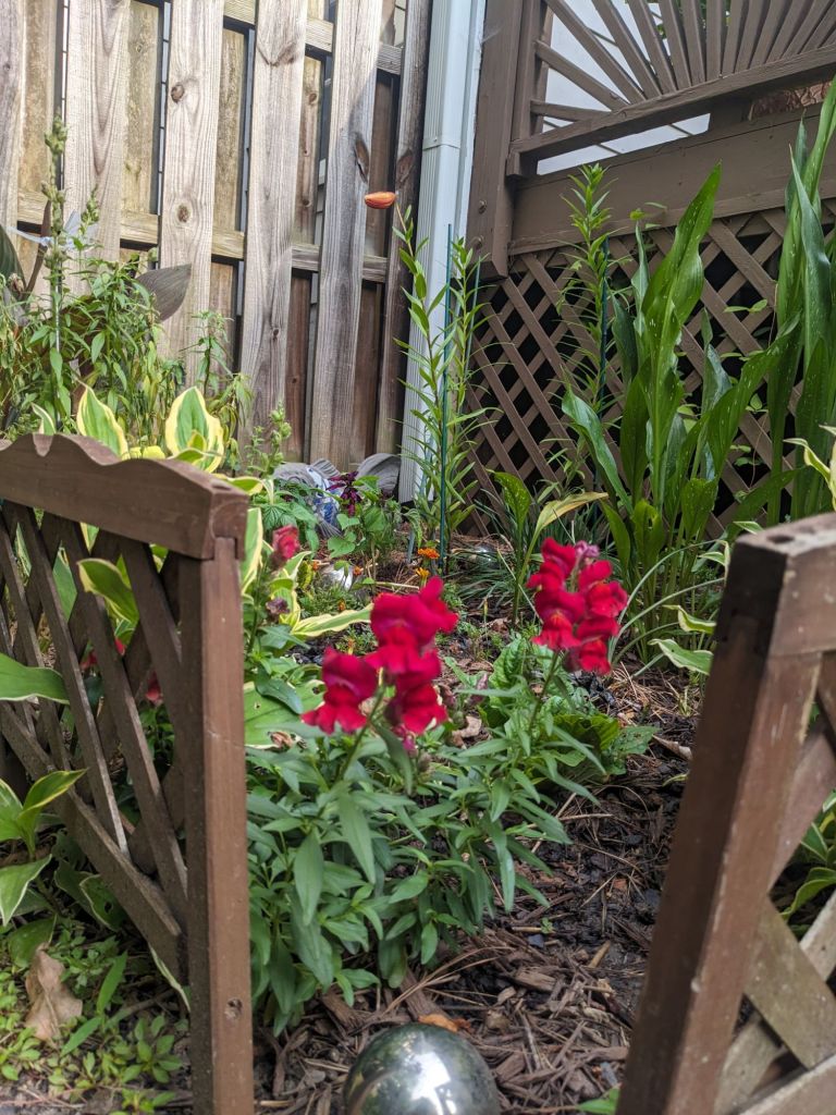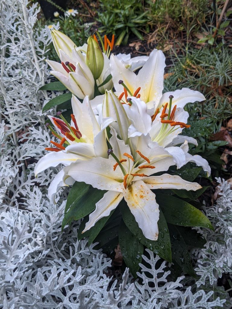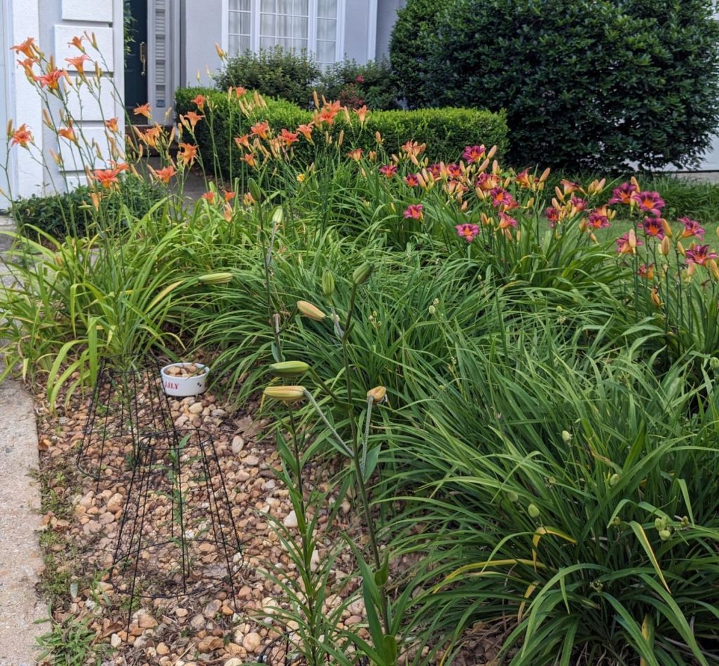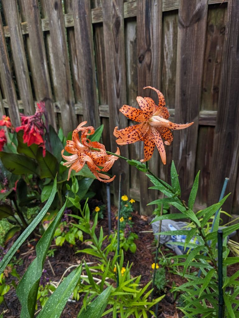 Day lilies Giant zinnia Begonia, vinca, balloon flowers, gardeniaDusty Miller, shasta daisies HostasGardeniaColeusSnapdragonsLavenderTorch lilies Canna lilies First tiger Lily! For those not in the know, my Lily rejoined the universe on March 14, 2023 and her ashes were buried with these bulbs at celebration of her life on April 15, 2023 ❤️Citronella Arabian Jasmine Gladiolus LiatrisCurcuma